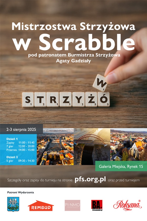 Strzyżów dołącza do scrabblowej rodziny02 - 03 sierpnia 2025 — Mistrzostwa Strzyżowa w Scrabble pod patronatem Burmistrza StrzyżowaInformacjeRelacjaWynikiHHRundyRankingPrzebieg