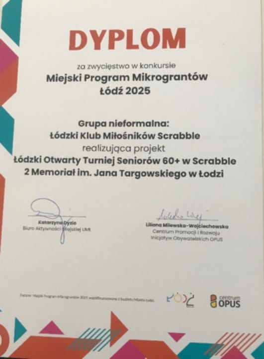 NEWS 4 * Jest sukces! Reszta tak po prawdzie zależy od Was drodzy skrabloseniorzy, a szczególnie od chcących spróbować swych sił w szlachetnej walce na słowa, łodzian, o!